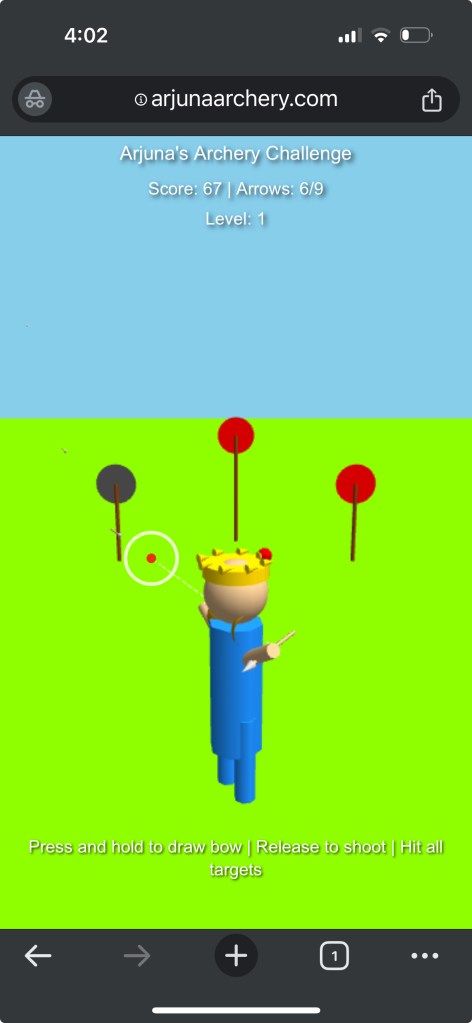 I’ve hosted the game here https://arjunaarchery.com and it runs completely in your browser – mobile or desktop.